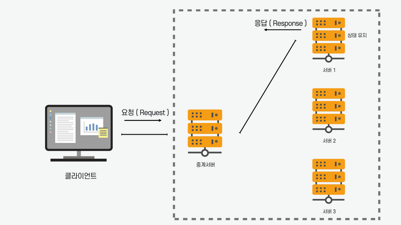 서버 1이 장애가 나더라도 중계서버가 서버 2랑 통신이 가능하게끔만 연결해주면 응답을 받을 수 있다.