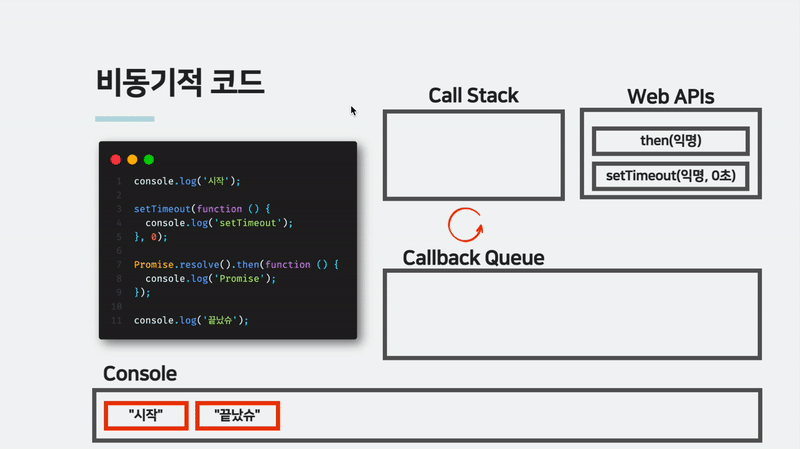 여기서 중요한 것은 콜 스택이 비어있다는 것이다.